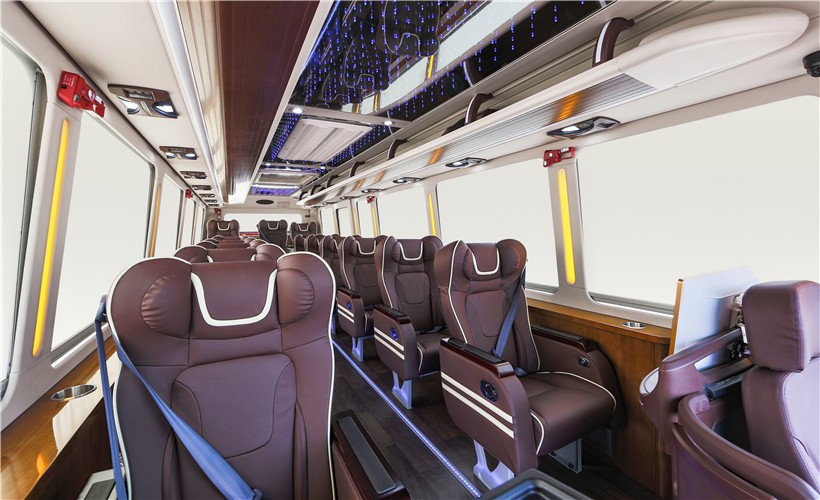 高端专属定制,让尊崇体验感更加深刻。每一处细节都精益求精,软包缝线工艺,豪华大商务座椅, 1+1座椅布置方式,腿部空间和左右乘坐空间达到头等舱水平。软包顶和星空顶两种豪华内饰风格,遥控射灯及七彩LED氛围灯,自动温控系统、车载冰箱及饮水机、USB充电接口等专属配备,营造更高端舒适的出行体验。