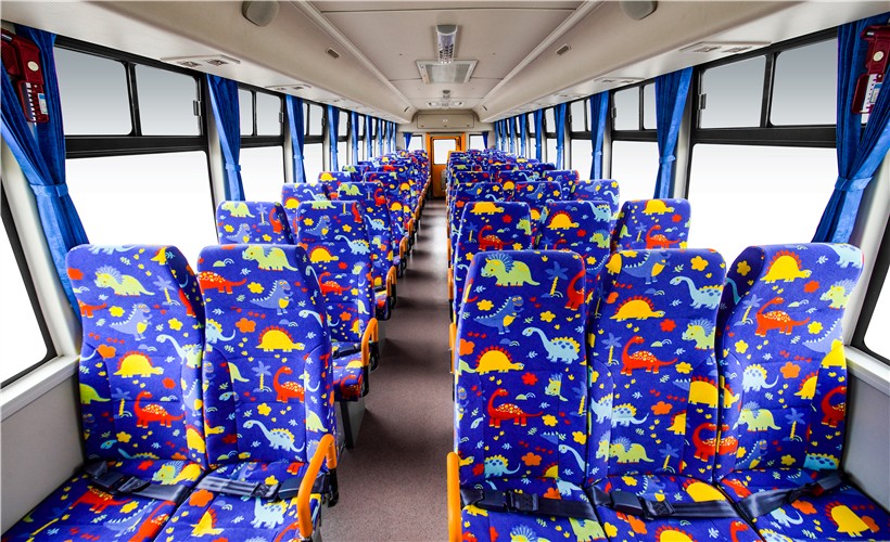 该车外观借鉴欧美校车风格,是严格按照GB24407-2012《专用校车标准安全技术条件》进行设计制造,更加适合中国道路运输条件的新款校车。车头采用整体冲压的可翻转长头设计,前伸式发动机布置;配备油箱防撞击装置;采用盘式制动器及新型缓速器,有效提高行车制动安全性;底盘车架采用整体贯通式直大梁,车辆前后装有大截面高强度防撞梁,优化设计悬挂及转向系统并配备前后稳定杆,极大提升车辆行驶安全。内饰设计色调清新活泼,乘坐空间宽大舒适;驾驶员视野360度无盲区;配备有停车信号臂、下封闭上推拉式侧窗、发动机舱智能灭火装置等,配备校车停车系统和限速装置,可加装胎压报警系统和智能计数系统,还可配备安全带集中解锁功能,安全性能更高,进一步保障学生安全。为家长和学校提供更加安心、贴心和放心的保证!