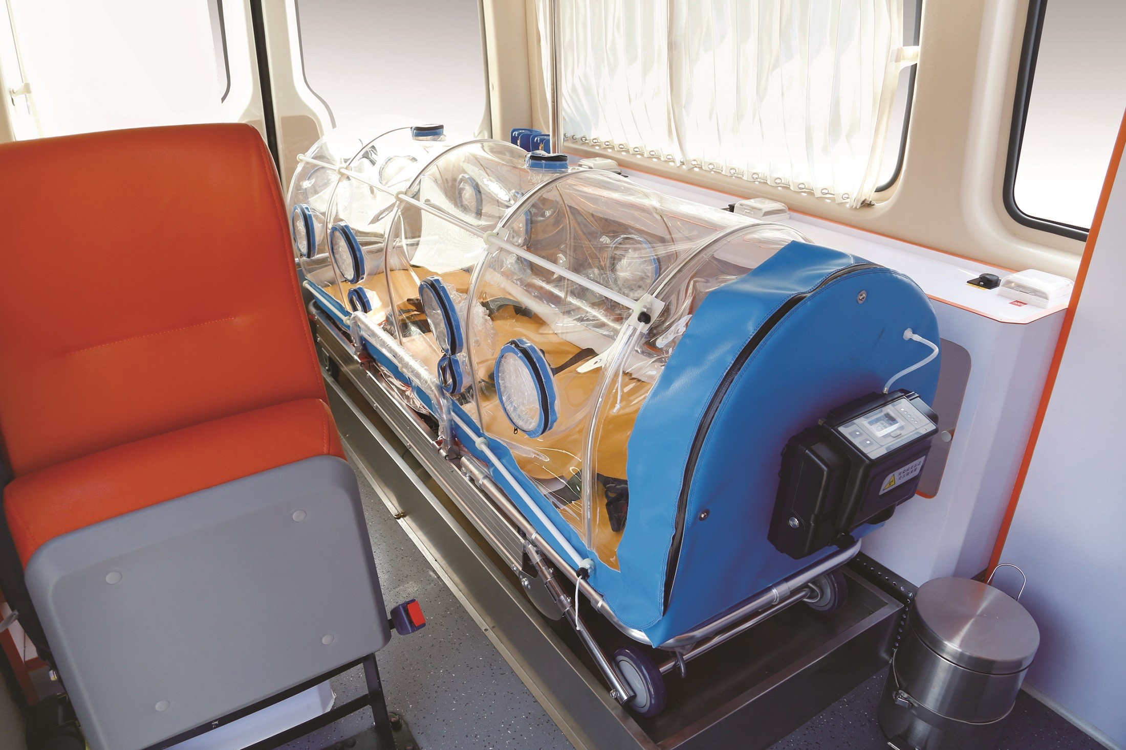 5、可配备负压隔离舱,过滤性能优良,配合专用的自动上车担架,有多档变位,便于灵活、方便、无感染地转运病人。