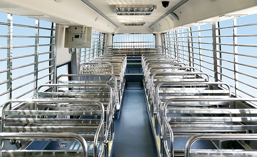 锦程囚车以人情化押运囚犯为核心,并融入现代化通讯技术。整车集安全警示系统、供电系统、现场实时图像监控、排气系统等功能于一体的多功能警务用车。整车科技含量高,工艺精细,是刑事警察部门科技强警的必备装备。