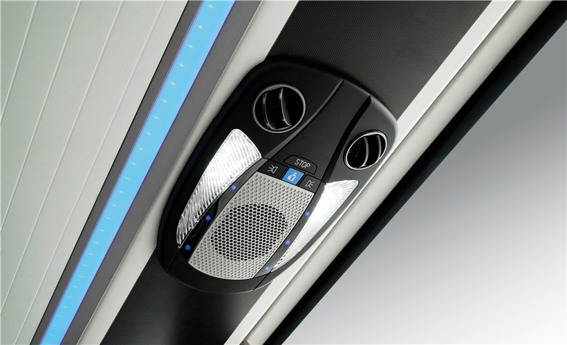 高端专属定制,让尊崇体验感更加深刻。每一处细节都精益求精,软包缝线工艺,豪华大商务座椅, 1+1座椅布置方式,腿部空间和左右乘坐空间达到头等舱水平。软包顶和星空顶两种豪华内饰风格,遥控射灯及七彩LED氛围灯,自动温控系统、车载冰箱及饮水机、USB充电接口等专属配备,营造更高端舒适的出行体验。