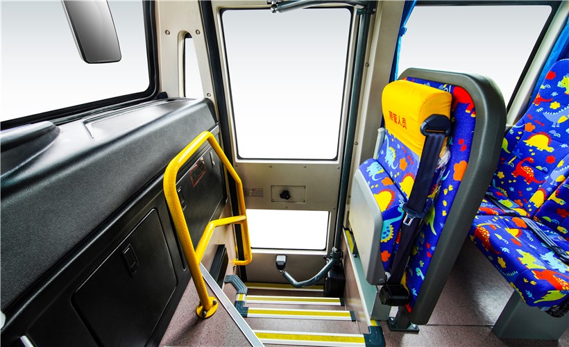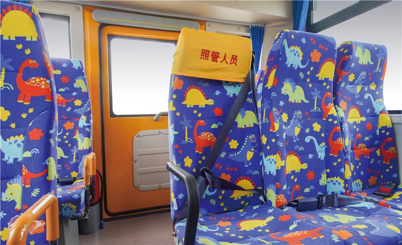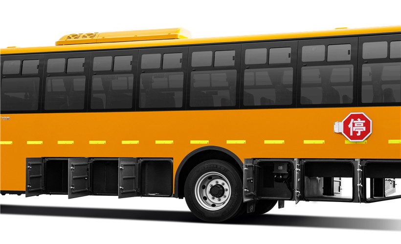 该车外观借鉴欧美校车风格,是严格按照GB24407-2012《专用校车标准安全技术条件》进行设计制造,更加适合中国道路运输条件的新款校车。车头采用整体冲压的可翻转长头设计,前伸式发动机布置;配备油箱防撞击装置;采用盘式制动器及新型缓速器,有效提高行车制动安全性;底盘车架采用整体贯通式直大梁,车辆前后装有大截面高强度防撞梁,优化设计悬挂及转向系统并配备前后稳定杆,极大提升车辆行驶安全。内饰设计色调清新活泼,乘坐空间宽大舒适;驾驶员视野360度无盲区;配备有停车信号臂、下封闭上推拉式侧窗、发动机舱智能灭火装置等,配备校车停车系统和限速装置,可加装胎压报警系统和智能计数系统,还可配备安全带集中解锁功能,安全性能更高,进一步保障学生安全。为家长和学校提供更加安心、贴心和放心的保证!