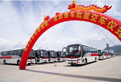 凯旋豪华大巴流线型外观简约时尚,鹰眼造型的LED组合大灯和两侧“GOLDEN DRAGON" 装饰件巧妙融合,整车更显和谐优雅。