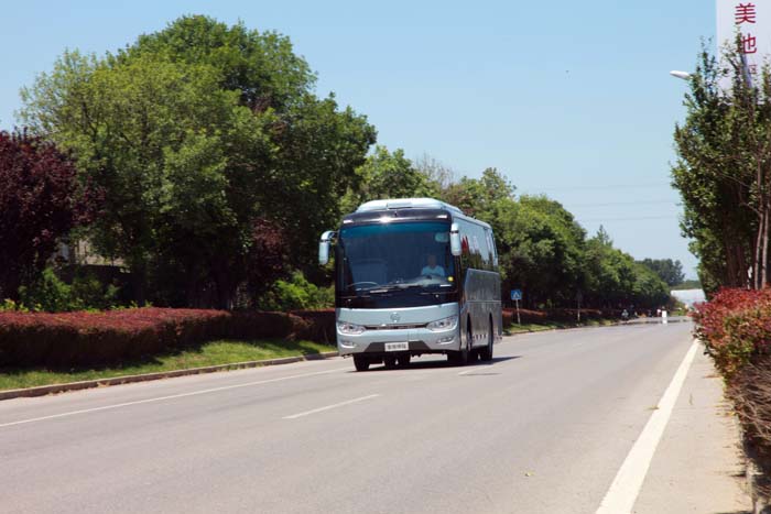 在动力配置上,新锦程搭载功率162kW玉柴国Ⅴ柴油机,36 Ah快充电池,电机额定功率95 kW,最大输出功率130 kW,匹配4挡AMT变速器。从整个试驾过程来看,在起步和中高速等常用工况下,新锦程在的动力表现都令人满意。我们分别测试了纯电动和混合动力模式的加速时间,在0~60 km/h两者相差不大,过了这个车速之后,柴油机的加速优势才有明显体现。新锦程采用4挡AMT变速器,换挡行为完全自动控制,在加速时不像人为操作那样直接,但换挡时挡位过渡更加平顺,乘坐者几乎感受不到顿挫感。
