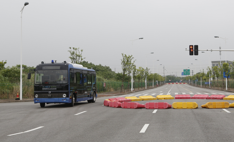 金旅无人驾驶客车通过模拟环岛
