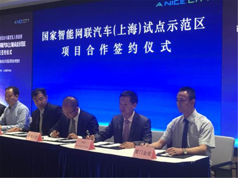 金旅(右一)于今年与国家智能网联汽车(上海)试点示范区签订项目合作