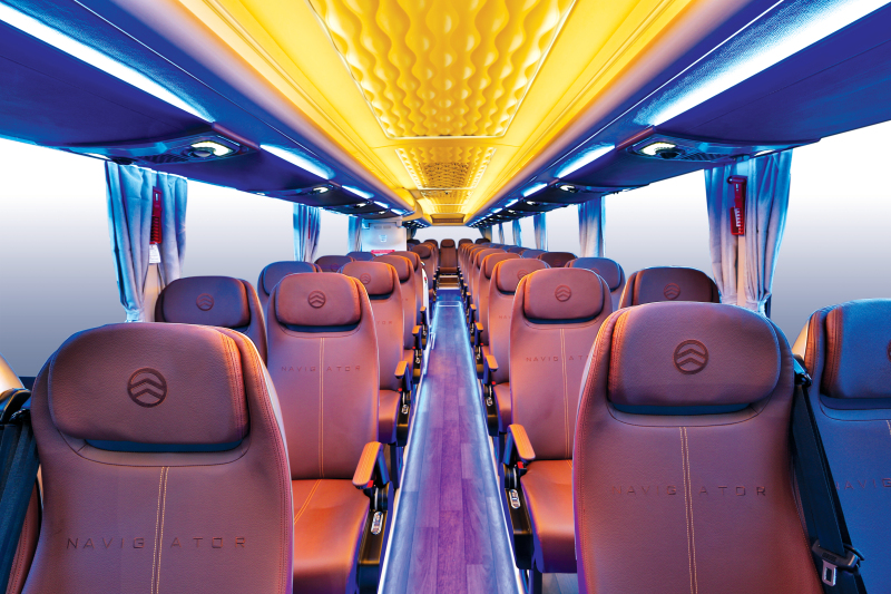 以内饰为例,领航者的目标就是树立业内的新标准,改变客户对于国内客车的认知,让每一位驾乘者都能从视觉、触觉、嗅觉和听觉等各个方面感受到发自内心的愉悦。为此,开发团队全盘否定已经成型的方案,多次推倒重来。在CMF(表面处理工艺)工程中,研发团队借鉴飞机商务舱、豪华房车、豪华酒店等内饰的设计元素,对灯光效果、触摸感等细节不断完善。全车氛围灯、无钉化内饰布置、软包缝线工艺、超纤材料皮革,电镀3D仪表台纹路,全新的人机工程学的乘客座椅。通过重构这些细节,不仅让整体设计更具层次感和深度,更为乘客带来视觉和触觉上的优良体验。
