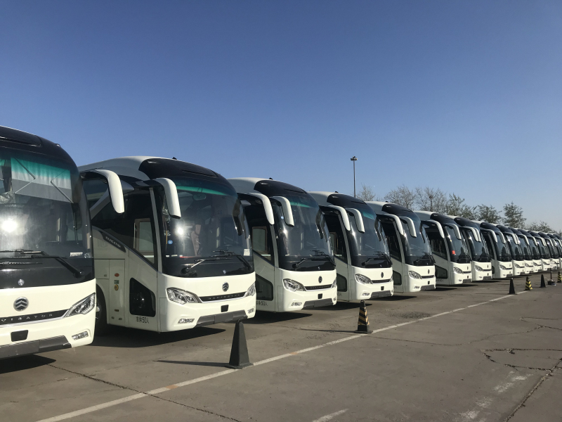 不一样的是,今年新月联合服务车队里多了一支亮眼的“新军”——60辆金旅客车领航者。