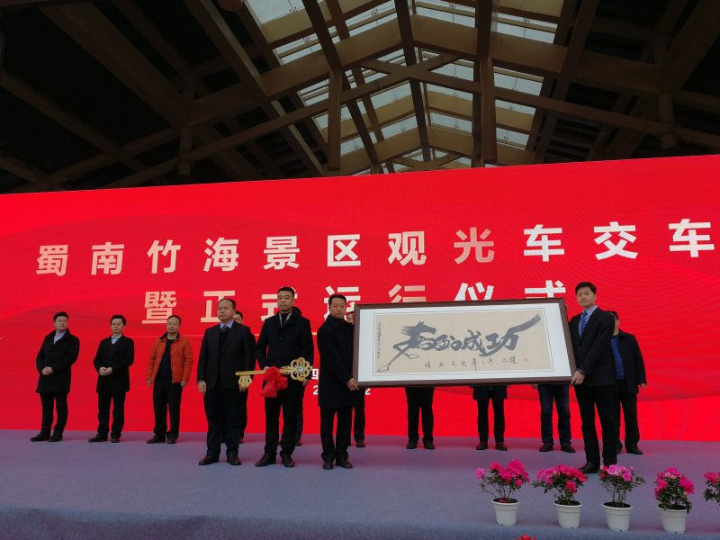 2019年12月31日,蜀南竹海景区观光车交车暨正式运行仪式在蜀南竹海游客接待大厅门口举行。