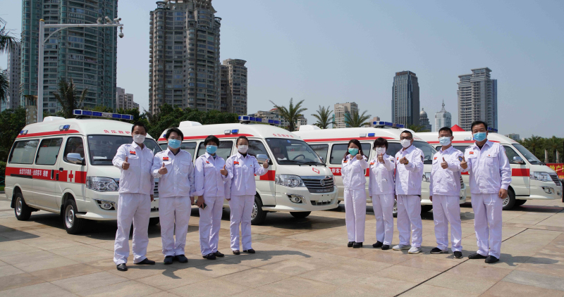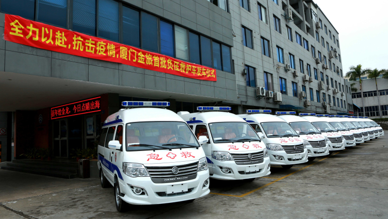 4月2日、8日,金旅分别向福州市、厦门市捐赠4台负压救护车。