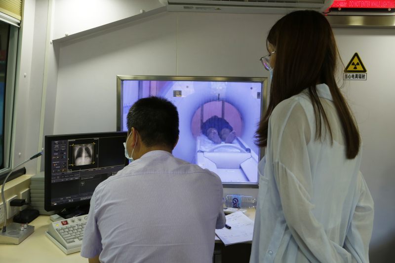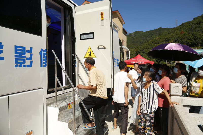 而义诊活动现场,最让老乡们惊喜的,是CT体检车的到来。作为本次活动的支持单位,厦门金龙旅行车有限公司和上海电气康达医疗器械集团股份有限公司,将合作打造的CT医疗车开到了活动现场,把CT检查搬到坑门里村民的家门口,并通过远程会诊系统和移动医疗数字筛查技术,对村民们进行肺癌筛查。