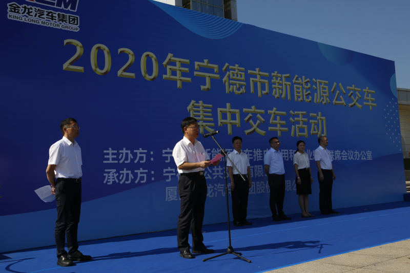 9月1日,2020年宁德市新能源公交车集中交车活动在宁德市会展中心举行。活动由宁德市新能源汽车推广应用和产业发展联席会议办公室主任、工信局局长徐光忠主持,宁德市副市长杨方,宁德市政府副秘书长周正明,宁德市交通投资集团有限公司党委书记、董事长陈合招,福建省汽车工业集团党组成员、副总裁陈锋,厦门金龙汽车集团党委副书记、副总裁吴文彬,宁德公交公司董事长郑长鸿等出席活动并见证交车。