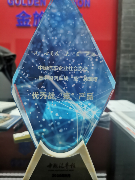 中国汽车企业社会责任优秀战“疫”产品奖杯