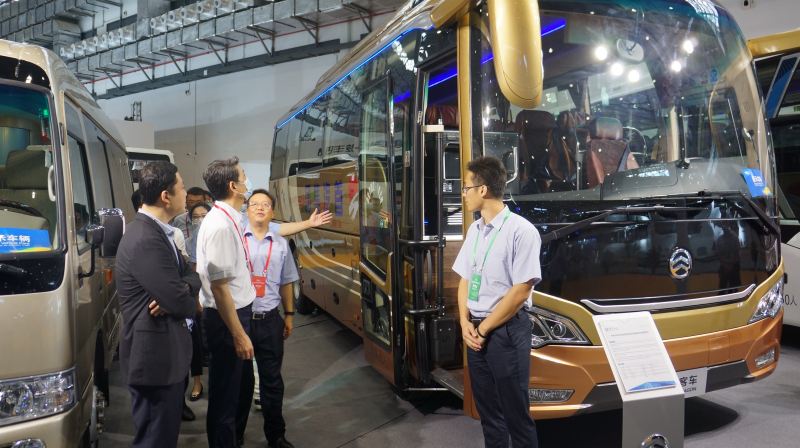 中国旅游车船协会会长赵金俊一行参观金旅展车