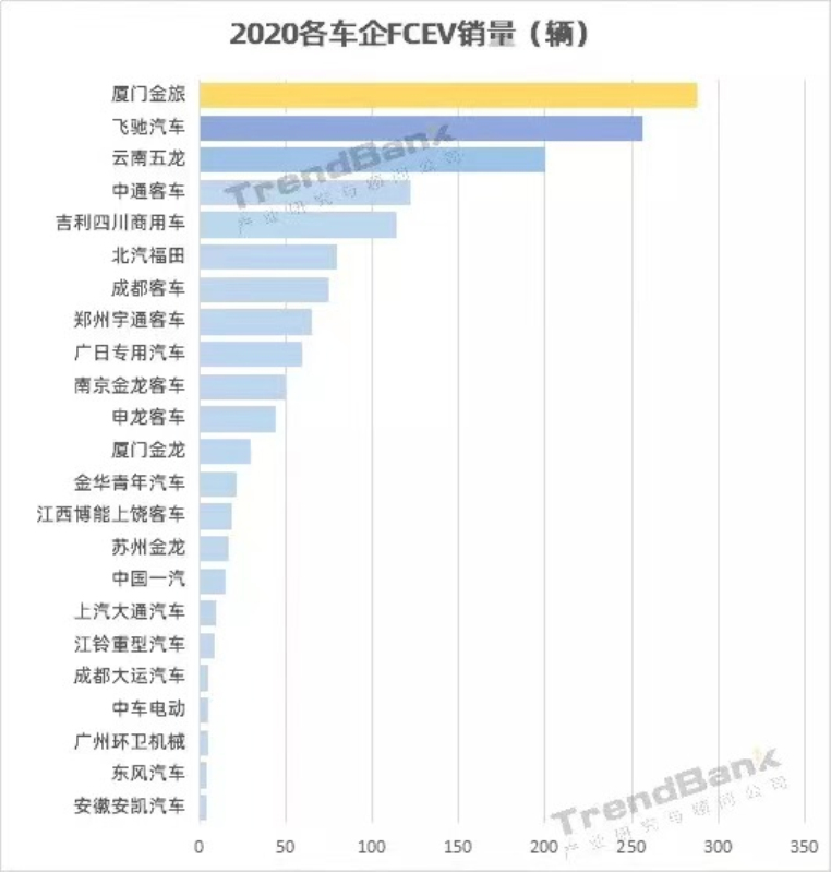据中国汽车工业协会数据,在2020年FCEV全国销售燃料电池汽车的23家车企中,金旅客车以288辆位居榜首。作为中国制造企业的代表,在这不平凡的一年里,金旅用这份沉甸甸的销售成绩,再一次展示了“氢能时代”领跑者的实力。