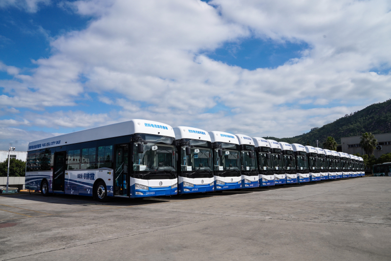 与传统客车相比,金旅氢燃料电池客车具有零排放、加氢快、续航里程长的优势,同时兼具噪音少、加速快、行驶平稳的优异性能,可实现-40℃存储、-30℃的低温启动要求。目前,金旅在全国各地燃料电池公交车推广应用步伐正逐渐加快,规模也在逐步扩大。