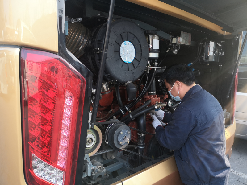 售后工程师对金旅领航者进行全面检查