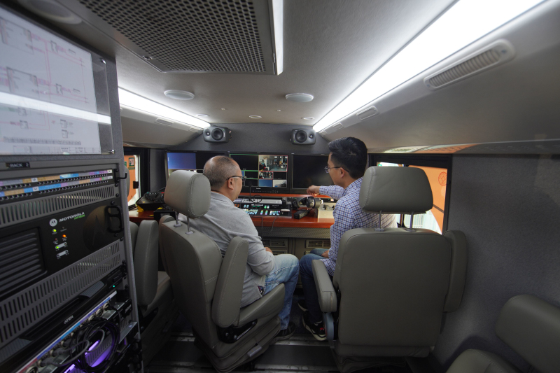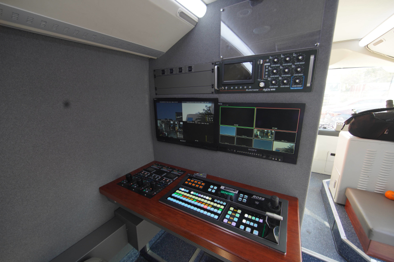 这是国内首辆超高清4K纯电动马拉松移动转播车,由厦门金旅根据星途车型打造,极具现代感的全屏式简约风格,配合欧洲经典的方基调,小圆角造型,保证车内空间最大化,为移动转播设备安置提供条件。这辆移动转播车的视音频制作系统采用4K标准并预留5G通道,采用微波技术,以确保高质量的信号采集与传输。在车顶还配备了三轴户外摄像稳定平台,保证摄像机在移动条件下的稳定拍摄。