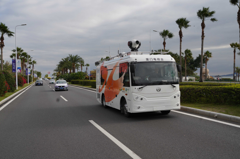 比赛当日,厦门广播电视集团携手中央广播电视总台对赛事进行现场直播。为了更加全面地展示厦马的比赛风貌,此次转播采取了创新的技术。除了沿用空中演播室、虚拟场景直播技术之外,还采用了国内首部超高清4K纯电动马拉松移动转播车进行直播,同时利用5G超高速率结合4K超高视频分辨率,首次尝试3D转播模式,用新技术手段来丰富视觉的表现方式。而其中,可爱灵活小巧的移动转播车吸引了大家的目光。