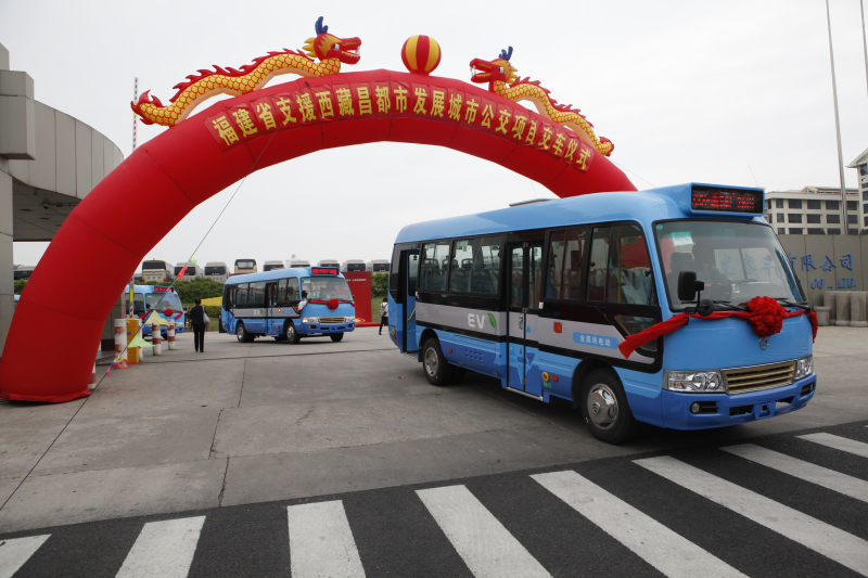 2018年11月1日,福建省支援西藏昌都市发展城市公交项目交车仪式在厦门金旅举行。福建省捐赠的20辆金旅7米纯电动考斯特造型公交车,启程奔赴世界屋脊之沿的昌都,开启了昌都市城市公共交通的新时代。这是国内纯电动客车首次批量进驻平均海拔3500米以上的雪域高原。