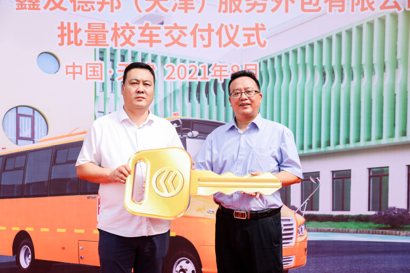 守护开学季,安全在行动。2021年8月18日,26辆全新一代金旅XML6791“小金象”中小学生专用校车正式交付鑫友德邦(天津)服务外包有限公司(简称“天津鑫友德邦”),成为天津引入的首批国六专用校车。鑫友德邦(天津)服务外包有限公司总经理张磊、厦门金龙旅行车有限公司国内销售公司副总经理李红斌等领导共同见证了这一重要时刻。