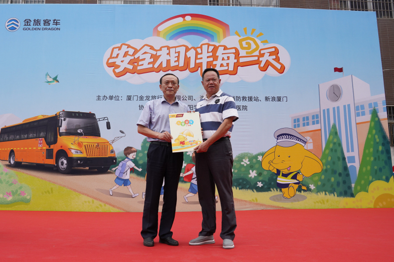 这次活动除了有丰富的知识宣讲、体验内容,金旅客车也准备了1100份《小金象儿童安全手册》,由金旅客车副总经理保洪全作为代表赠送给海沧新阳学校。手册以卡通漫画的形式讲述交通安全知识,希望小朋友们在生动有趣的阅读中,学习并增强安全意识,加强面对各种危险时的应急能力。