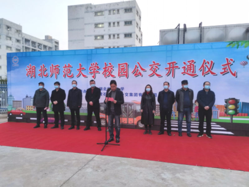 2月28日上午,湖北师范大学校园公交开通仪式在湖师东二门广场举行,六辆金旅星辰正式投入校园运营。黄石市城市公交集团有限公司党委书记、董事长崔向云,湖北师范大学党委常委、副校长余涛等领导及师生代表参加仪式。