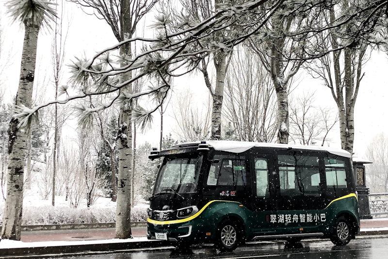 金旅星辰自动驾驶客车在北京翠湖湿地公园