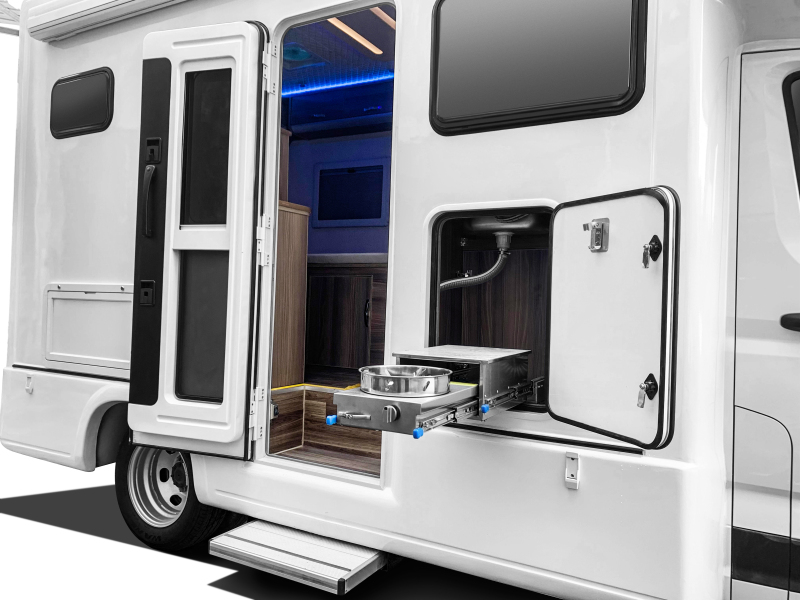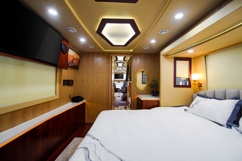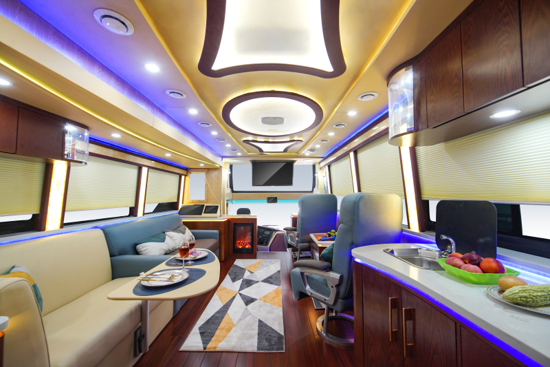 打开车门,无限风光扑面而来;关上车门,则是温馨舒适的居家体验。野外露营,洗澡因为条件所限,经常成为无法解决的问题。金旅所有的房车都配备了完善的淋浴设施,想洗澡随时随地都有充足的热水,可以洗去一天游乐带来的疲乏,让你在旅途中享受更多舒爽。同时,配套的智能灶台套装,冰箱,微波炉,智能马桶,洗衣机等等日常用具一应俱全。一杯咖啡,即可享受静旎的星空;一顿烧烤,呼朋唤友带来小聚开怀。车内采用环保材料打造温馨内部空间,餐桌、吧台、电视K歌等影音娱乐系统样样不缺,还可根据客户需求定制豪华大床或上下双床,让人安享睡眠。同时整车NVH静音技术及悉心调教的旅居车专用悬架系统,让旅途更加平稳舒适。