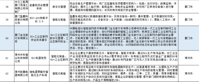 福建省新一代信息技术与制造业融合发展项目(第一批)部分列表