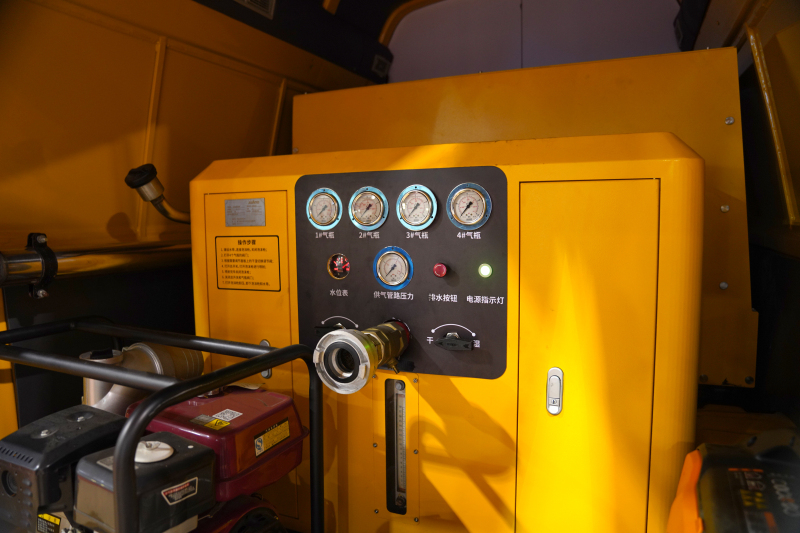 车辆携带的压缩空气泡沫灭火系统,体积小巧灵活,采用电力驱动,可固定安装也可移动使用。该系统只需负载一种灭火药剂(A类泡沫),产生扑灭A类火灾泡沫的同时,可根据需要调节A类泡沫比例,产生扑救普通B类火灾的泡沫,一机两用。另外,高效省水是这套系统的另一个突出特点。一滴水经过该装置变成七个气泡(气液比7:1),每个气泡的灭火效能和一滴水相同,灭火效能高,与纯水灭火比较,灭火效率可达20倍,水的利用率提高到8倍,这对于大部分城中村和偏远村镇缺少市政消防设施,无消火栓、消防水池等补水设施的地区来说,意义重大。
