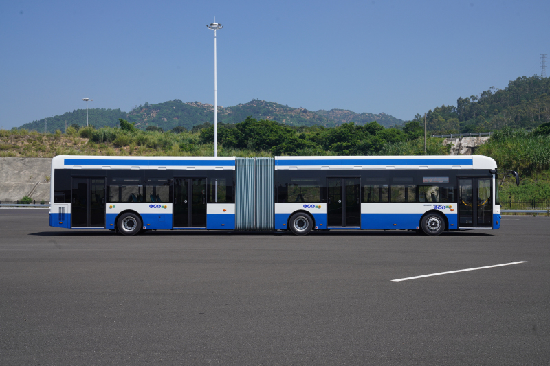这款18米纯电动公交车是金旅客车针对保加利亚市场精心打造,首先在造型和涂装上就采用了明显的欧式风格。由于公交客车主要在市区行驶,平均车速在30-50km/h,受风阻的影响并不大,所以这款18米纯电动公交车没有采用流线型前脸,而是看上去更加硬朗的“方基调”造型。增加了前部的车内空间和座位数,挡风玻璃和侧面车窗的面积更大,加大了驾驶员和乘客的视野范围,改善了车内的光线。配合“小圆角”的处理,以及前围顶端的大型电子路牌的加持,提升了整车的辨识度。这种高度贴合欧洲主流城市公交车的设计理念,也提升了金旅客车在欧洲市场的品牌影响力。