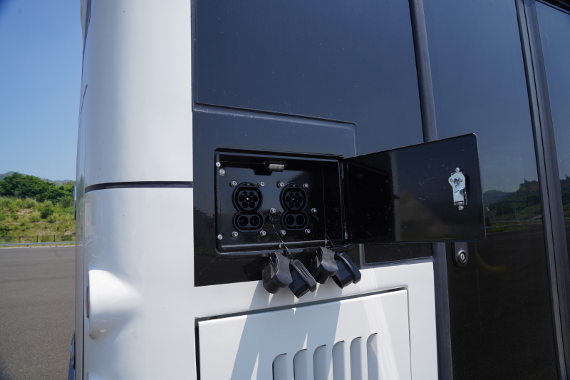 这款车搭载了第三代金旅E动力系统和CATL电池,电池容量超过500度,续航里程可以达到400km左右,同时顶置电池的设计,也成就了车内大容量。据了解,运营这款车的保加利亚用户,每天运营里程在300公里,在结束一天的运营之后,车辆可以在夜间低谷时进行充电,这样电费的成本更低。同时为了提升充电效率,该车还特别采用了300千瓦的双枪充电口设计。