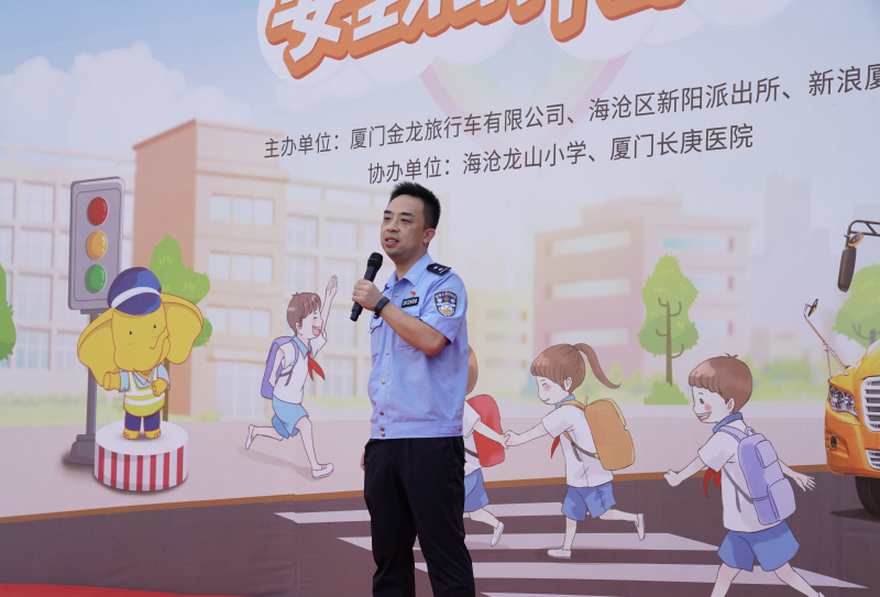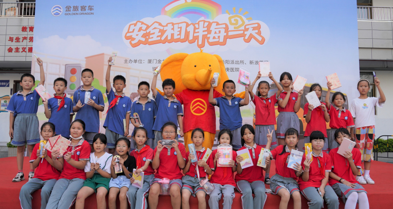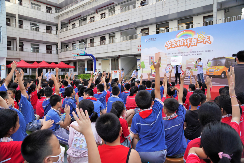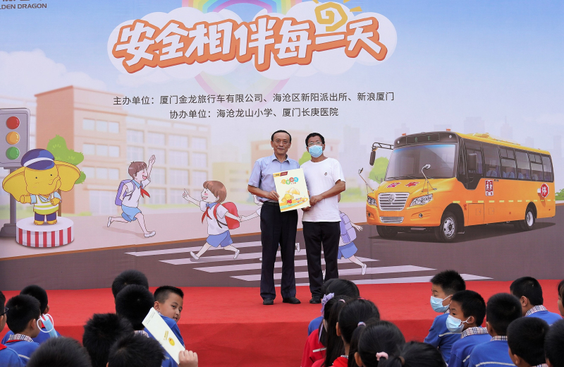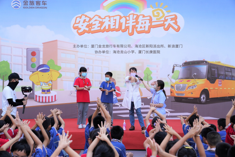 9月22日下午,厦门金龙旅行车有限公司联合爱心单位海沧区新阳派出所、厦门长庚医院、新浪厦门,将一年一度的“安全相伴每一天”儿童安全知识公益活动送进厦门市海沧区龙山小学。活动现场通过生动有趣的安全知识体验、有奖互动问答,让同学们在九月开学季“安全第一课”中轻松愉快学习安全知识。