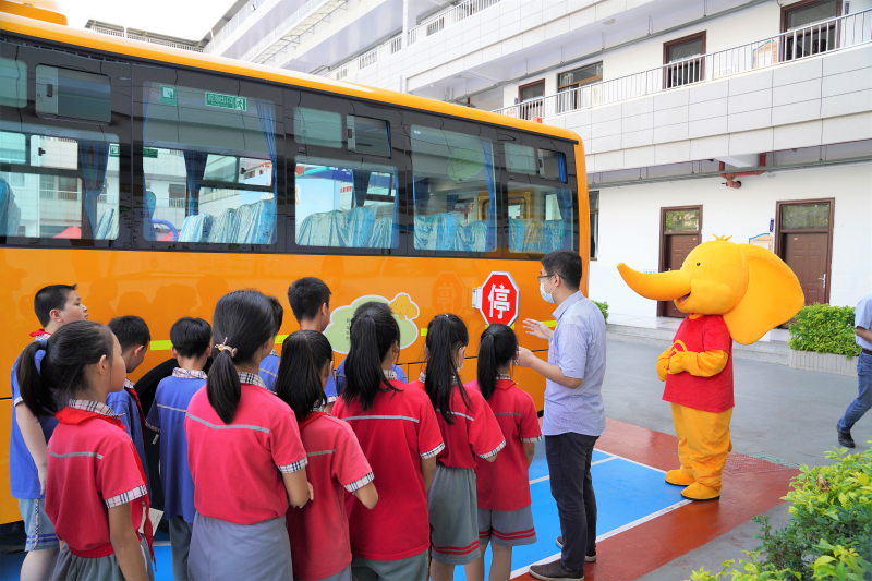 在简短的开场后,金旅校车的卡通形象代言人“小金象”亮相龙山小学操场,与200多位同学们见面互动。在“小金象”的带领下,12位同学代表参观体验了金旅校车。金旅的产品工程师也为同学们讲解乘坐校车的各项安全知识。“通过工程师叔叔的讲解,我知道了校车为什么要长着‘长鼻子’,也知道以后坐校车的时候要注意什么啦!”龙山小学五年级学生骄傲地和身边的同学们分享校车“知识点”。