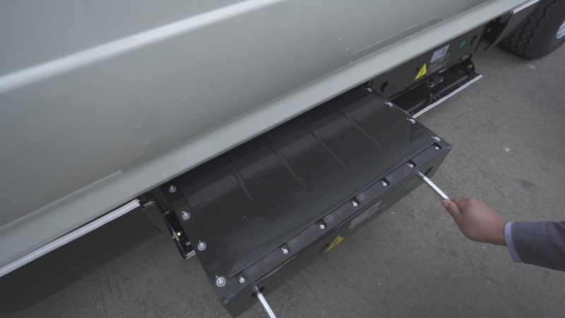 在厦门一家物流园区内,车主小林正在为自己新购买的金旅换电物流车龙运GLE850换装电池。从移动换电柜中取出电池,到将电池推升至车辆底盘的电池槽位置,整个过程只花了3分多钟。轻松换电的过程就像“放大版”的共享充电宝租借一样简单。
