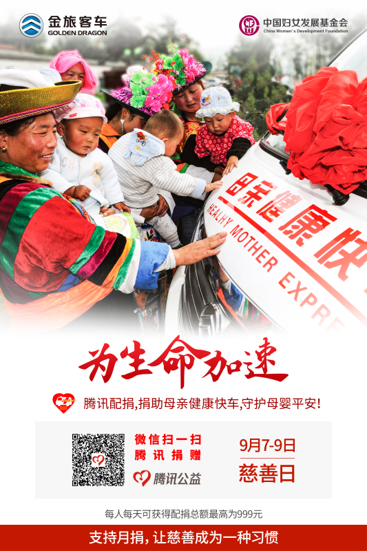 多年来,金旅不仅为“母亲健康快车”项目制造“生命车”,同样积极参与到该公益项目中,通过捐赠、参与腾讯99公益日配捐项目等多种方式,为关爱妇女儿童健康贡献自己的微薄力量。