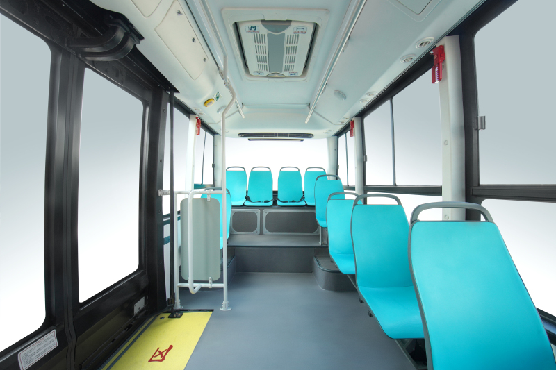 此外,在车内空间提升后,驰睿实现了标配9+1的座椅布局,最后排座椅从同类车型的3个提升到4个。整车玻璃透光区域面积达到16.6㎡,提升了车内的通透感,为司机与乘客提供了良好的视野。电动塞拉门的净宽度达到1200mm,有效提升了运营高峰期的上下车效率。