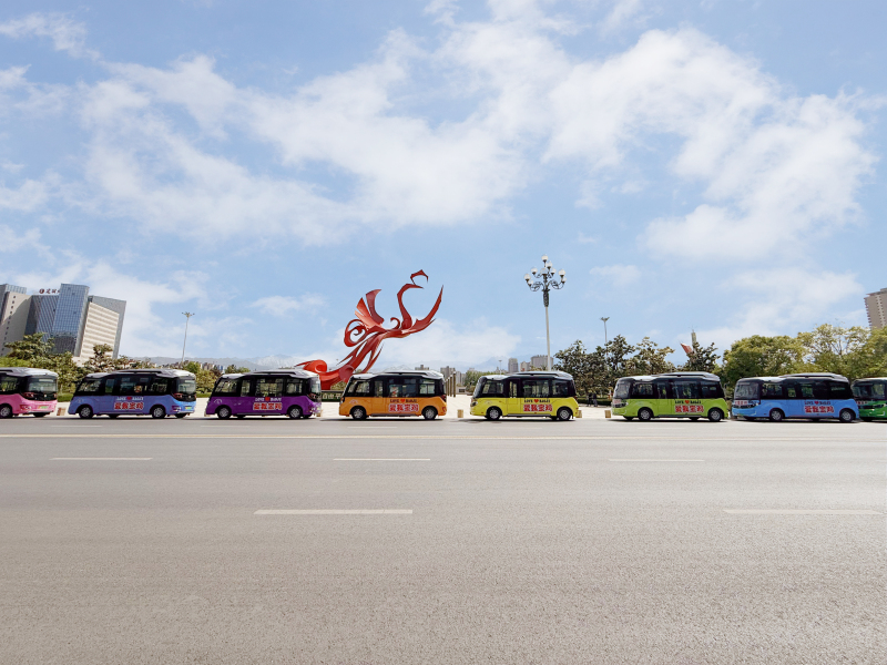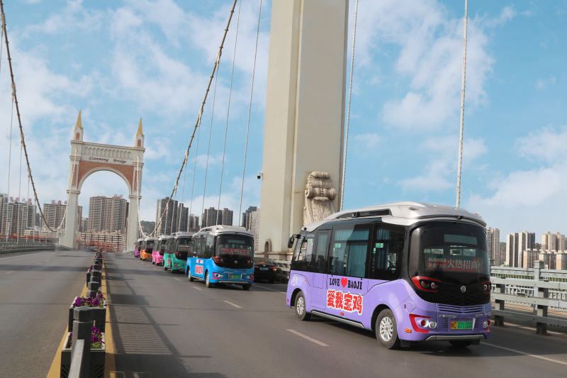 在陕西省宝鸡市,一辆辆绘有“爱我宝鸡”的迷你主题公交车往返于街头巷尾,服务市民、游客出行。它们环保时尚、小巧灵活、萌趣十足,采用“一车一色”设计,成为城市流动的靓丽风景线;它们开进社区、接驳高铁、直达景区,串联起居民区、商圈、景点及铁路站点,带来绿色、便捷、高效全新出行体验;它们小身体蕴含大能量,成为创新公交服务、拓展多元业务的好帮手,助力公交企业降本增效……这批6米金旅星辰纯电动公交车凭借呆萌身形与灵活特性,在多元场景中精准发力,为宝鸡公交高质量发展注入动能。
