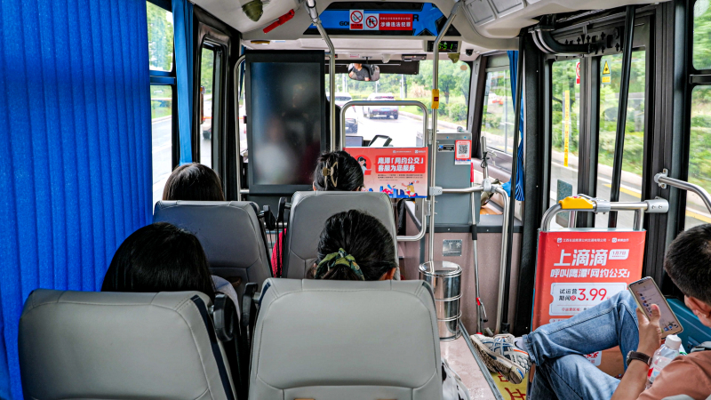 金旅星辰巴士也没让鹰潭公交失望,一上线就受到乘客的好评,除了外观可爱、符合年轻人的审美,纯电动车型、提供12个超宽软座、配备USB充电接口、1.2米宽的电动塞拉门方便上下车,都让网约公交的体验感更好。