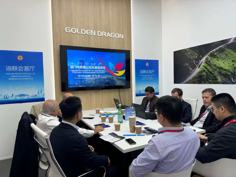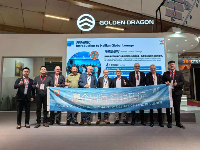 在金旅客车的展台上,“通全球·链厦门”主题推介活动同步举行,成为展会现场的焦点之一。活动现场不仅展示了厦门在智能制造、绿色能源、汽车出口等领域的领先优势,也展现了“厦门制造”在国际舞台的崭新形象。