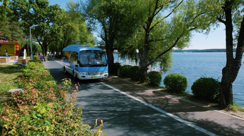 秋日,当晨光穿透长春净月潭96.38平方公里浩瀚林海,一辆辆金旅纯电动考斯特景区接驳车缓缓前行。车窗倒映着漫山苍翠,车轮轻碾过带着晨露的路面,几乎听不到多余噪音,只偶尔传来游客因瞥见湖面波光而发出的轻声赞叹——这幅“车在林中走,人在画中游”的画面,正是净月潭作为国家5A级景区,以绿色接驳串联生态之美与游客体验的生动缩影。