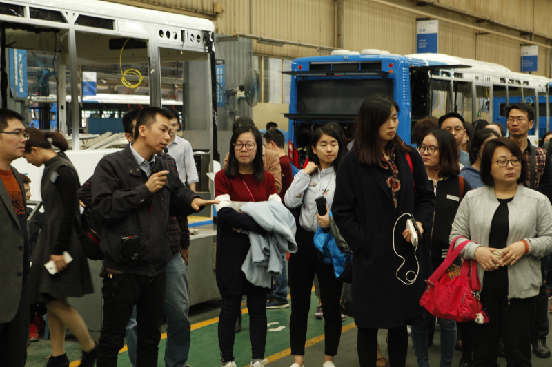 在工艺管理部工程师陈伟红带领下,就业指导老师一行40人首先参观了海沧生产基地,对公司大型客车的生产管理、流程及工艺亮点等有了比较深入的了解,同时对公司的一线生产环境有了切身体验。参观期间,正值公司“决战150天”的攻坚战中,老师们在参观过程中深刻感受到了金旅公司生产一线齐心协力、团结拼搏的劳动氛围。