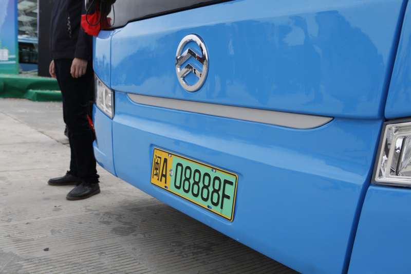 仪式现场为新能源公交上新绿色牌照