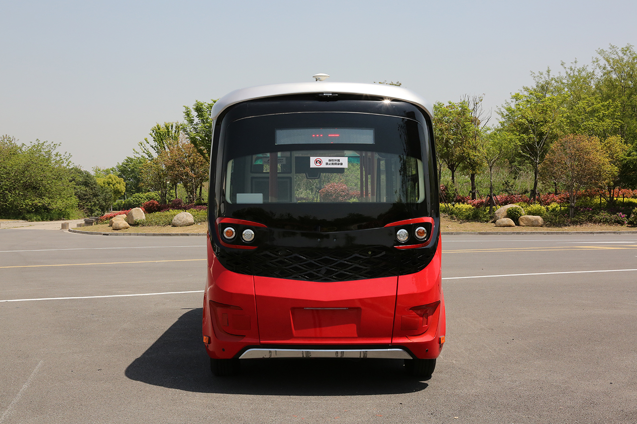 “范”,但红色“星辰”外观反而更简洁,大部分雷达感知系统采用整体嵌入式设计,除了圆头圆脑憨态可掬外,与普通客车无异。