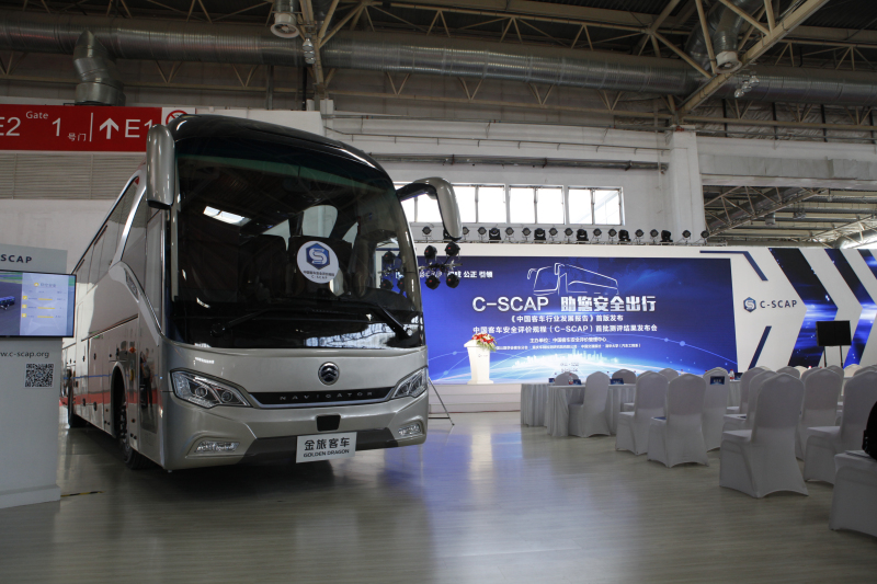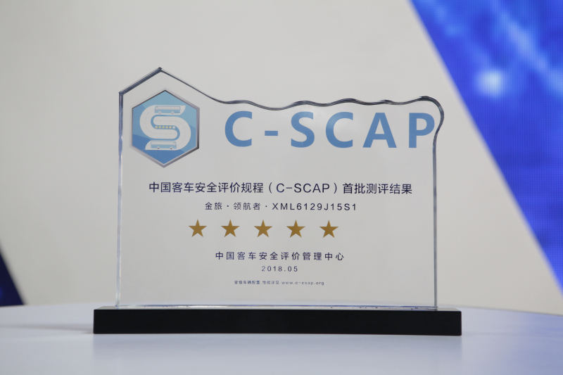为了弥补国内外客车安全测试评价领域的空白,C-SCAP应运而生。《中国客车安全评价规程》(China Safety Coach Assessment Programme,C-SCAP)由中国公路学会客车分会、重庆车辆检测研究院、中国交通报社、清华大学(汽车工程系)联合成立的客车安全评价管理中心负责运行管理的项目。通过按照“比我国现有强制性标准更加严苛”的要求,对车辆进行安全性能测试,通过量化分值直观展示客车产品的安全性能。测试内容主要包括制动安全、稳定安全、结构安全、保护安全四个维度,并在引领实用性新技术、新装备应用的角度在评价体系里设置了加分类项目。在刚刚结束的2018年北京道路运输展上,金旅领航者凭借强大的实力,成为《中国客车安全评价规程》(C-SCAP)评出的中国首批五星安全客车。