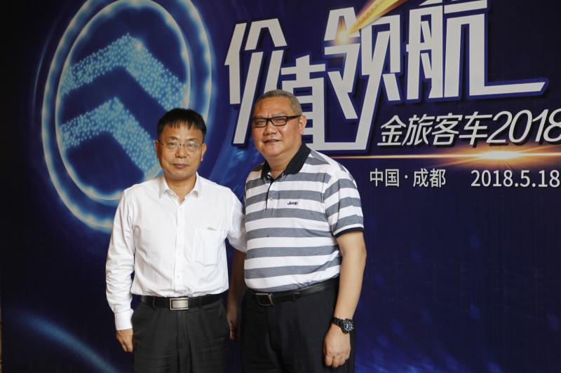 厦门金龙旅行车有限公司董事长吴文彬与重庆公路运输集团公司的副总经理彭志国合影