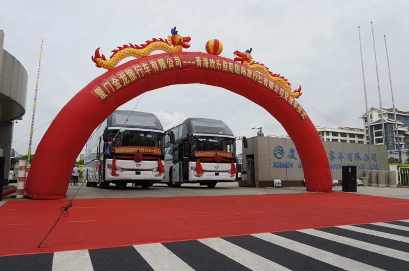 7月6日,“厦门金龙旅行车有限公司—青海欢乐假期国际旅行社有限公司交接车仪式”在厦门隆重举行,20辆金旅凯歌豪华旅游大巴整装备发,青海欢乐假期国际旅行社有限公司副总经理王英瑞、副总经理朱勇武,厦门金龙旅行车有限公司销售公司副总经理赵立树等领导和来宾出席了该交车仪式。据悉,该批车辆为目前为止青海省旅游市场配置最高的大巴车辆,将服务于高端客户群体,打造品质之旅。