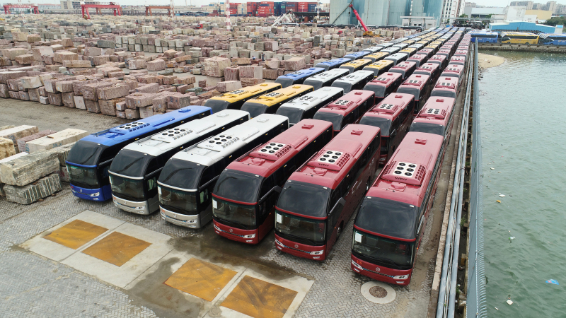2018年6月在厦门码头即将发运往沙特的金旅客车