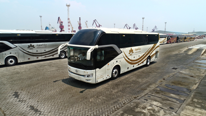 朝觐是伊斯兰教的“五功”之一,是每位穆斯林信徒一生中至少要进行的一次活动。每年,来自全世界的朝觐者会齐聚麦加,他们将此视为一次非常重要的精神之旅。2017年,赴麦加参加朝觐的人数超过235万人。面对这全球最大的年度聚会,数百万人的交通运输问题给沙特政府带来了巨大的挑战。近年来,沙特市场成为中国客车出口的最重要的市场,中国客车成为沙特客车市场毫无疑问的主力军。2018年7月,金旅客车两批共计270辆豪华大巴相继抵达沙特,交付ELSERAG和DMTC两家当地运输企业,将服务于麦加朝觐人员的运输,其中,6辆金旅领航者豪华大巴投入沙特后将成为沙特最高端配置的中国客车。